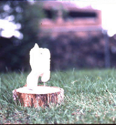 This piece was done at a summer art camp run by Irma Jo Dobes, a great art teacher. I think it is remarkable the amount of movement and spin the piece has. And the emotion of the chase that I got out of the block of plaster. I know it impressed me that I could do it age 9.